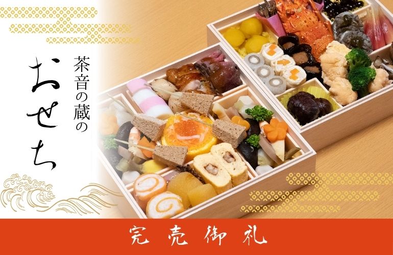 お茶の創作レストラン「茶音の蔵」おせち料理は、お陰さまで予定数量を完売いたしました。